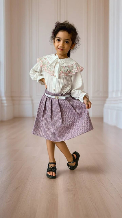 چهار تیکه مجلسی شومیز دامن و کمربند و گیره دخترانه