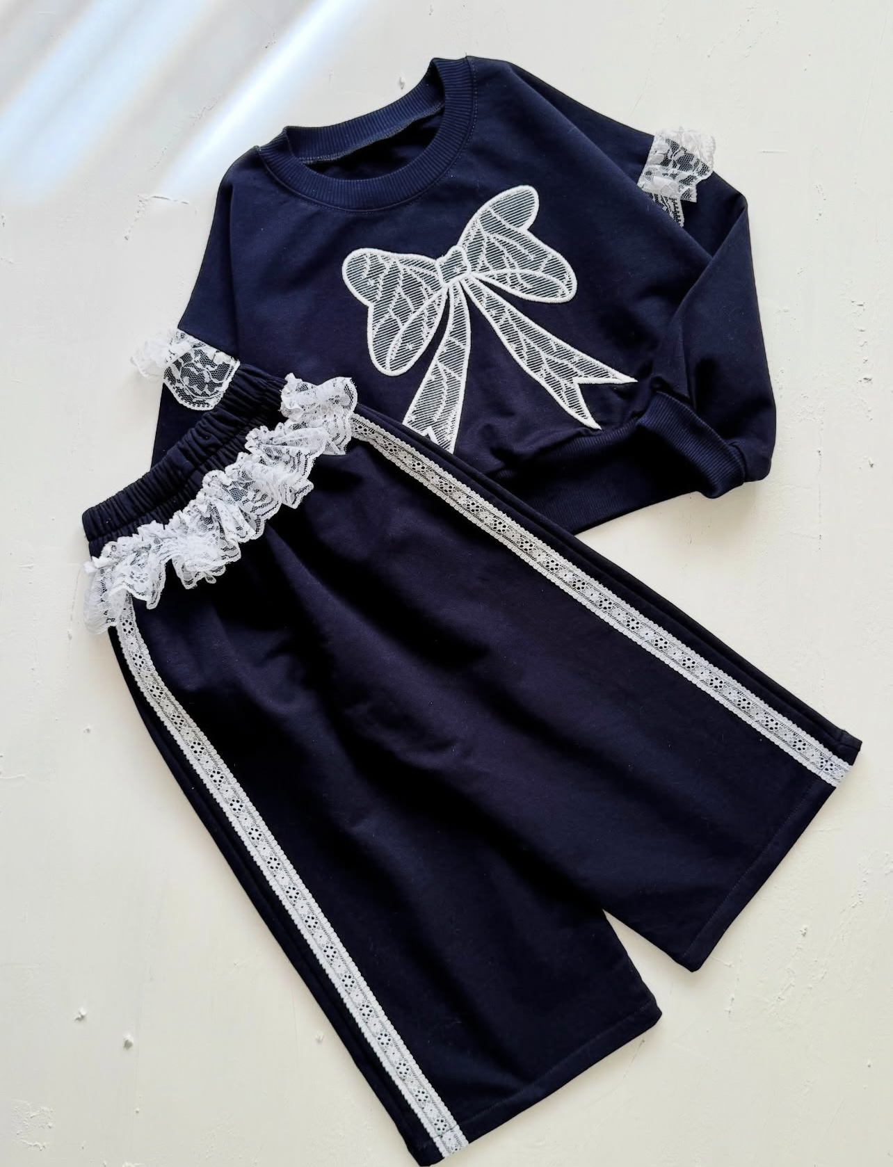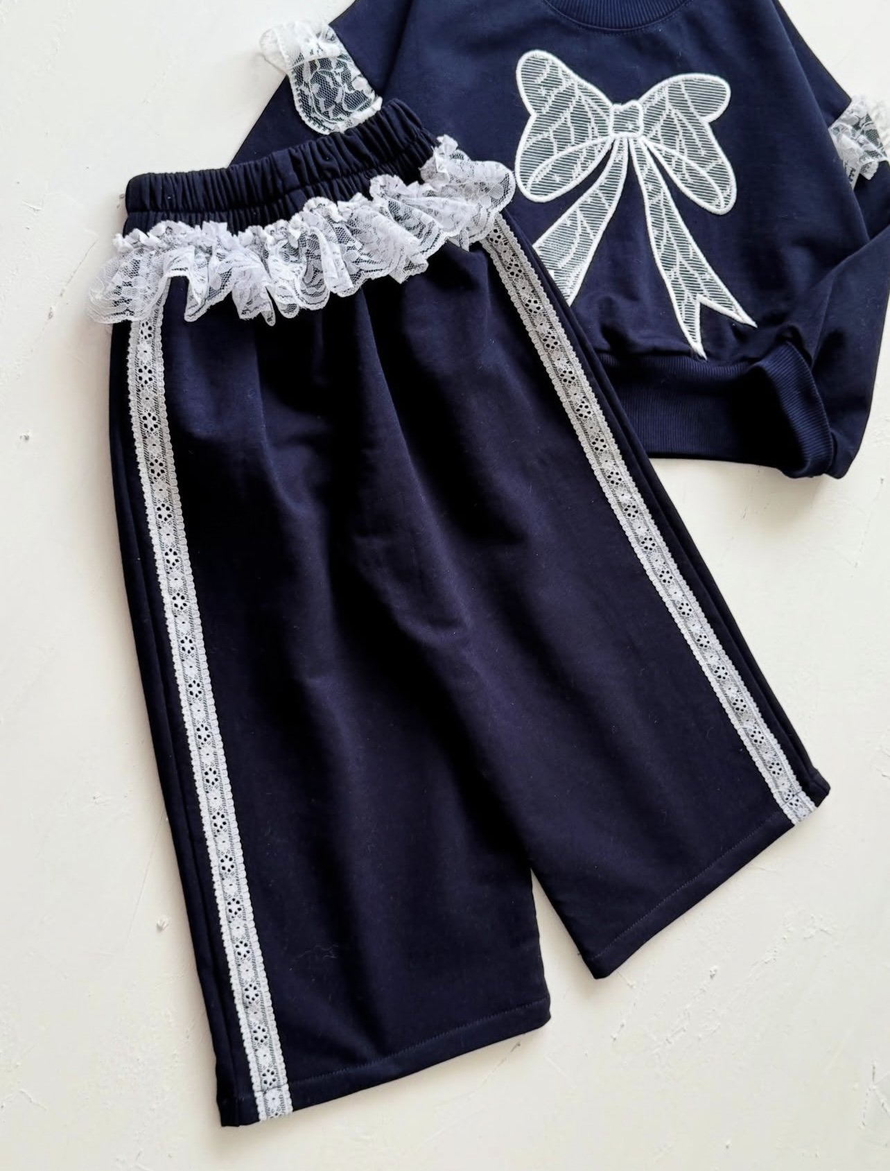 کراپشلوار دورس پاپیون گلدوزی شده دخترانه